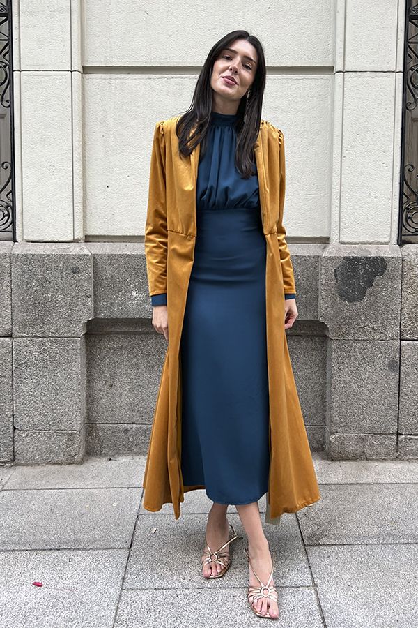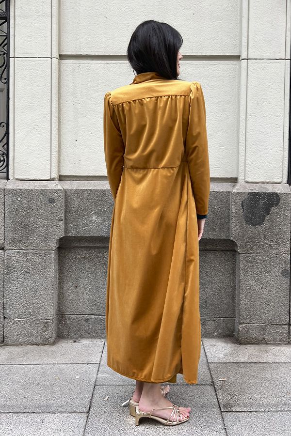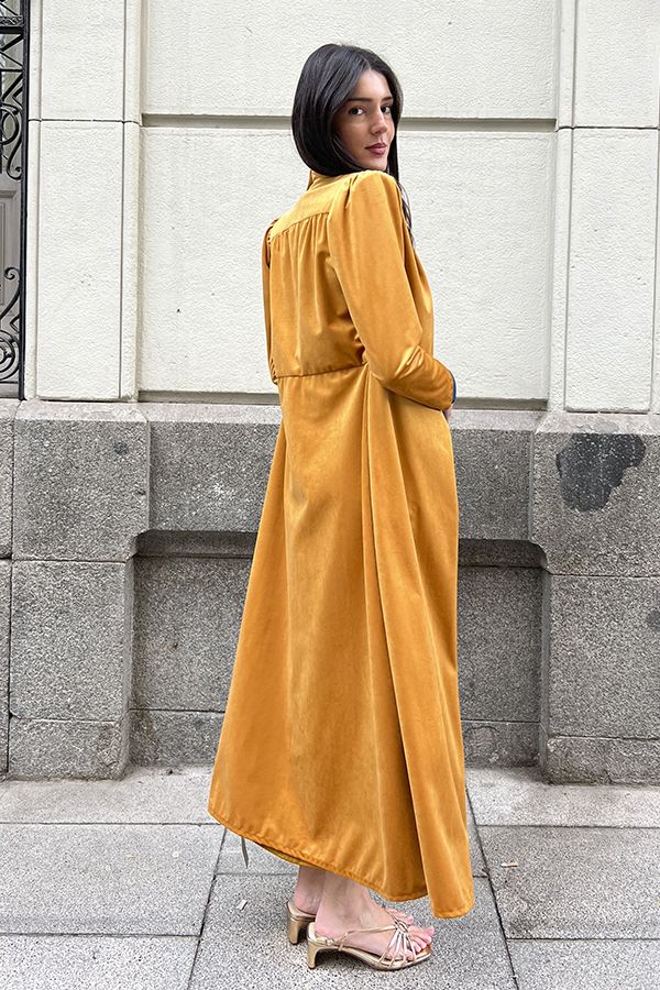 Abrigo Midi de Terciopelo Mostaza con Hombreras