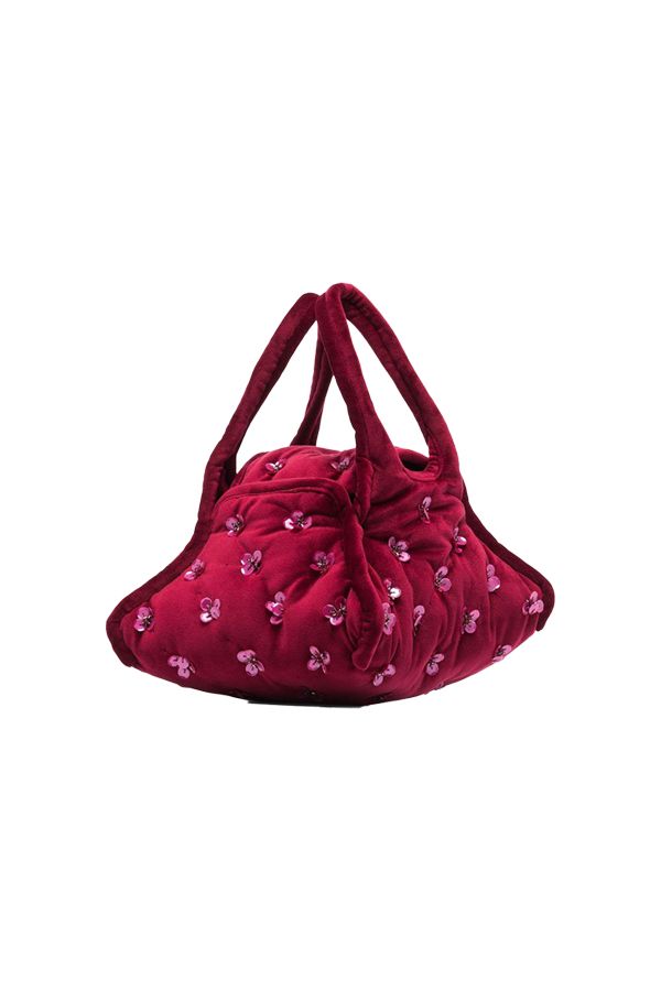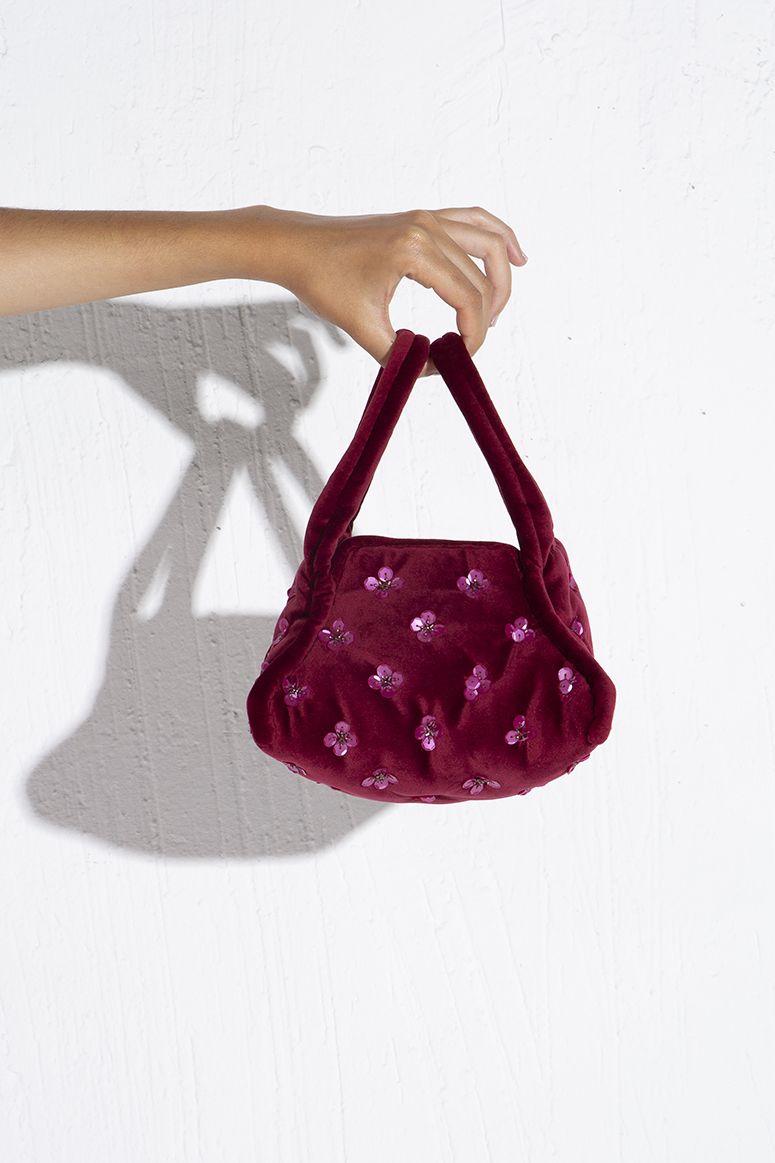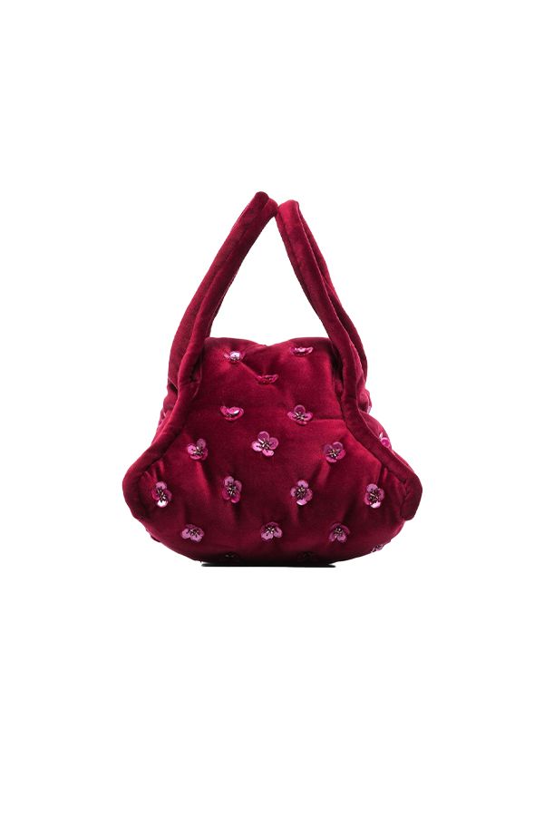 Bolsito Terciopelo Apliques de Flores Rojo Vino