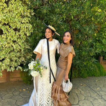 Bolso con asa de mano y detalle de nudo con cierre de imán. Fabricación artesanal.