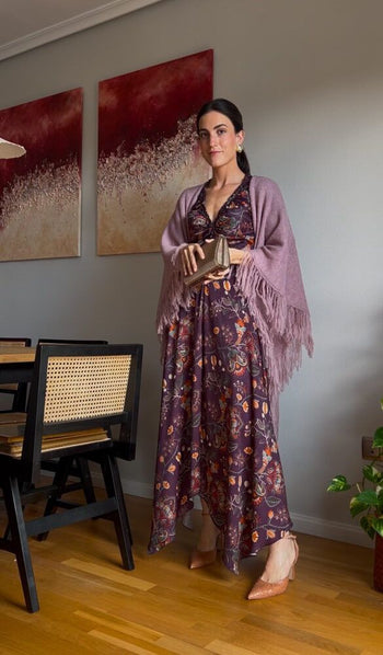 Chal de punto en varios colores lisos, confeccionado en mohair, lana y otras fibras.