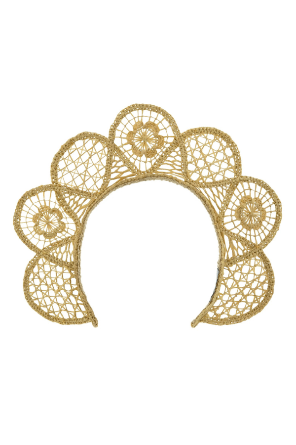Completa tu look con esta corona de rafia y deslumbrarás.