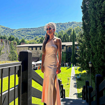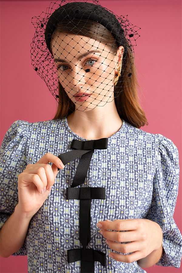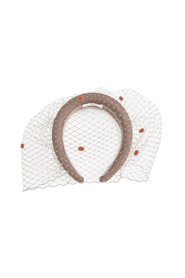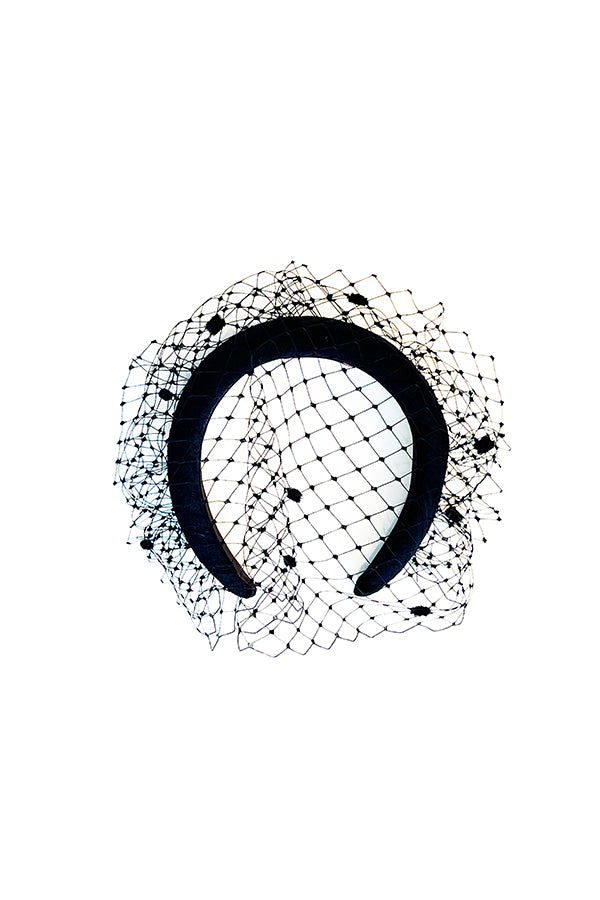 Diadema ancha forrada con velo a tono. Puede presentar variaciones en forma y tamaño debido a su carácter artesanal.