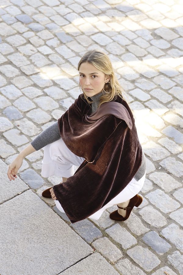 Fular de terciopelo de seda. Admite distintas posiciones.