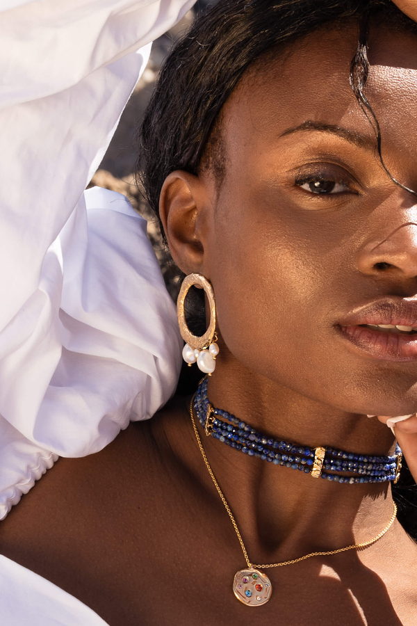 Baño de oro de 22k. Piedra: Perlas de agua dulce. Peso: 14 g.