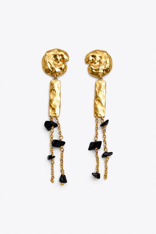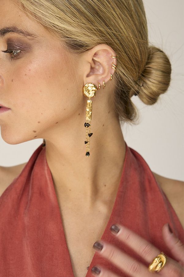 Pendiente largo con textura orgánica y piedras negras en suspensión.