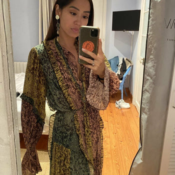 Silueta alargada decorada por sietes uvas de diseño abstracto. Ausencia de peso.