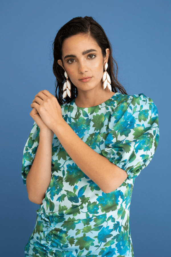 Combínalo con el vestido Olinda en negro, sandalias de color y coleta baja desenfadada