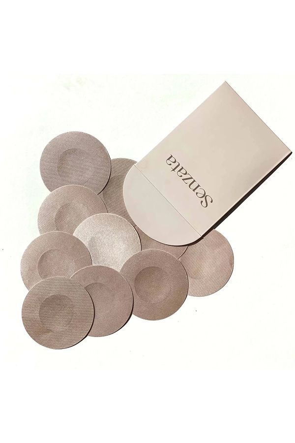 Cubre-pezón adhesivo y transpirable en el centro. Incluye cinco pares de pezoneras.