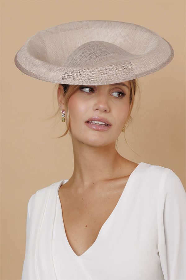 Tocado de sinamay. Se sujeta con diadema. Hecho a mano en España.