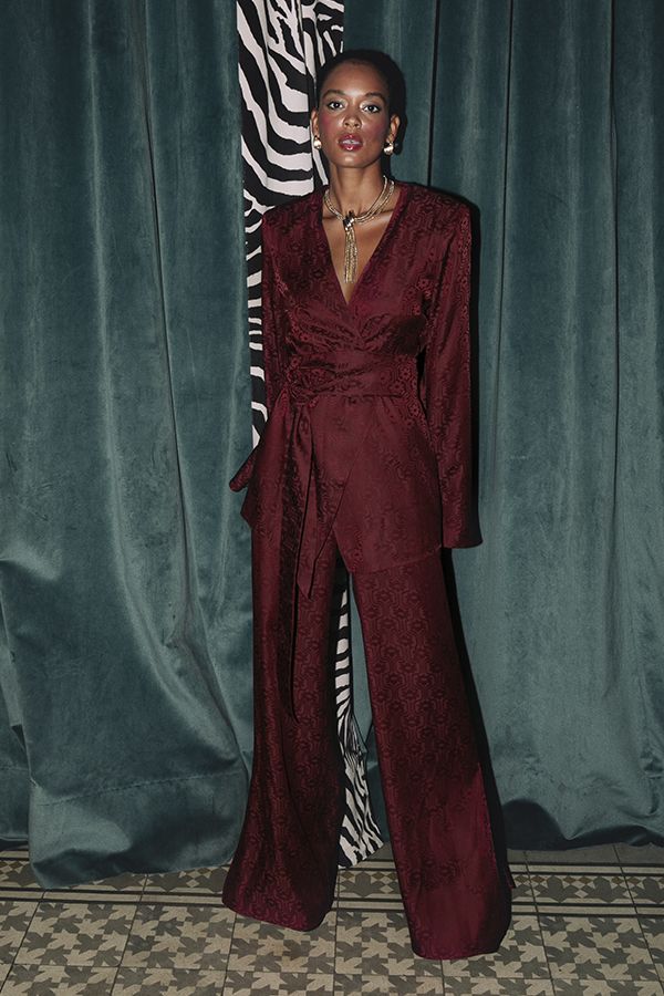 Traje Frida Burdeos Estampado con Cinturon