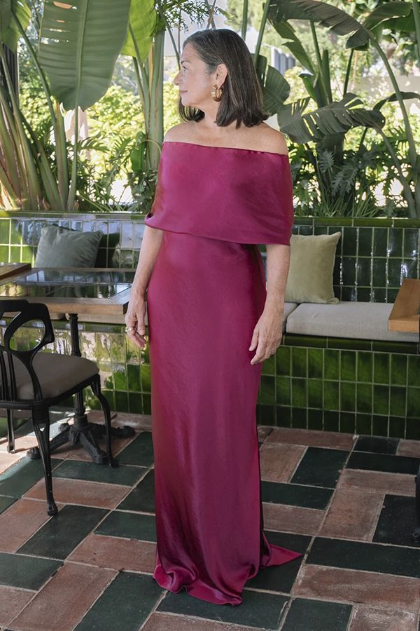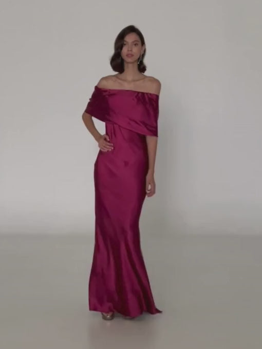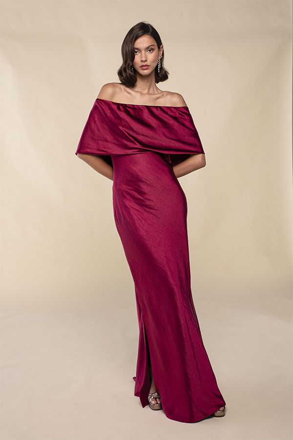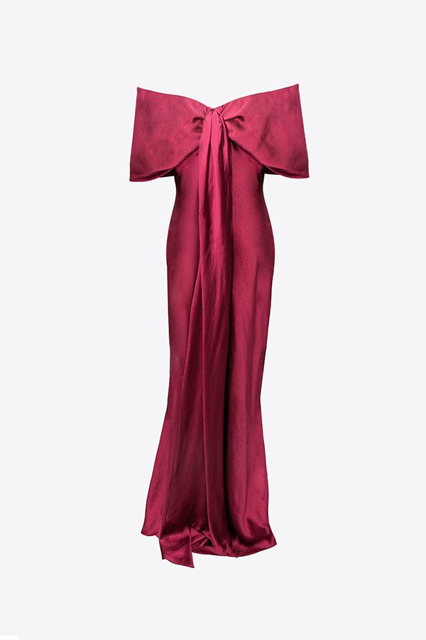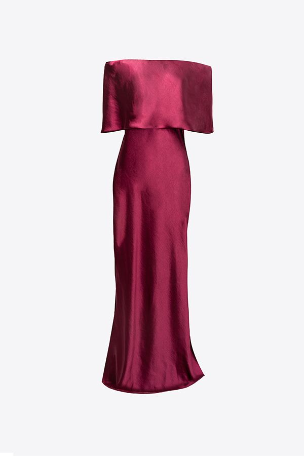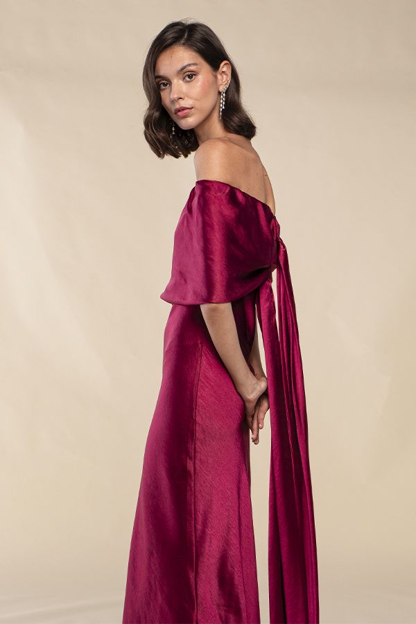 Largura maxi, cortado al bies y escote palabra de honor con dos lazadas en la espalda que permiten distintas posiciones. Tejido satinado.