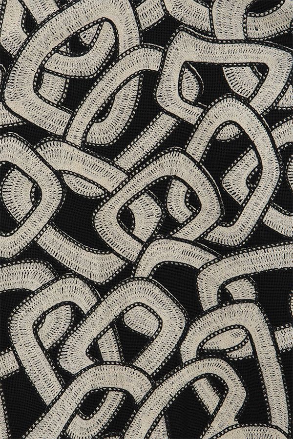 Vestido midi confeccionado con malla bordada. Corpiño ajustado con cortes delanteros, escote en forma de corazón y tirantes ajustables con detalles en los bordes. La cintura ceñida conecta con una falda circular de gran volumen. Forrado y con cremallera expuesta en la parte posterior.