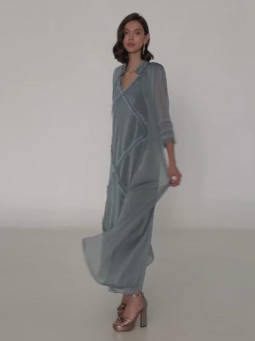 Vestido Mara Largo Azul Plomo con Chaleco