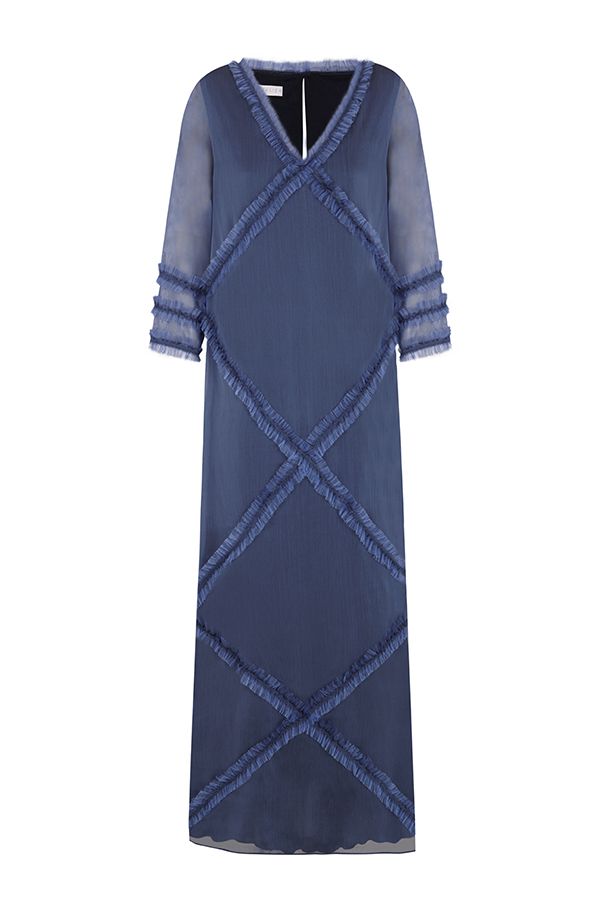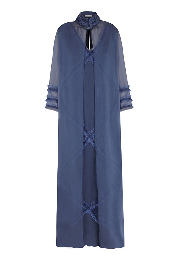Vestido Mara Largo Azul Lavanda con Chaleco