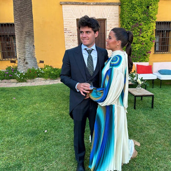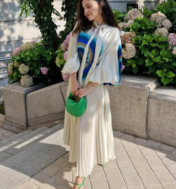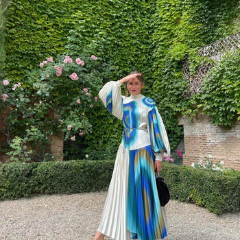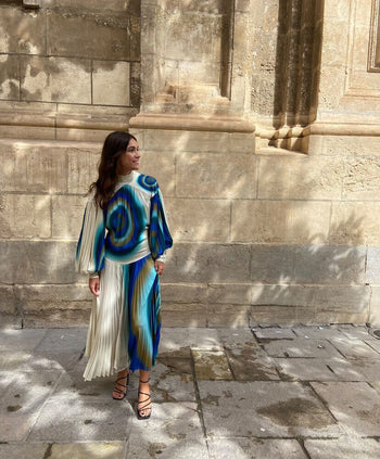 Vestido Una Midi Plisado Estampado Perla